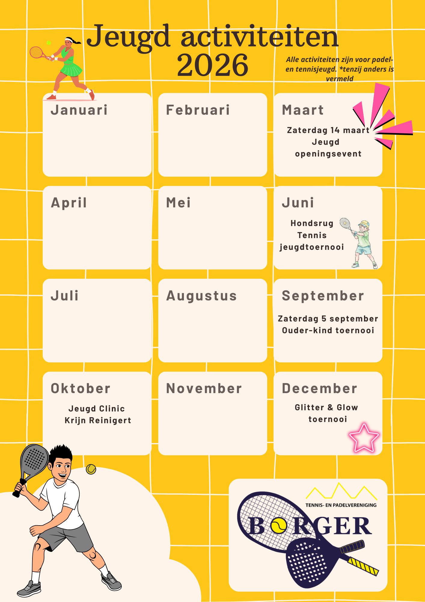 Glitter & Glow toernooi of een clinic. Hou de jaarkalender met jeugdactiviteiten in de gaten!