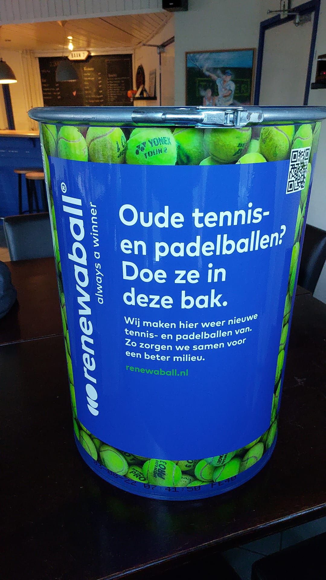 Daarom starten we een samenwerking met Renewaball. Zij halen de ingezamelde ballen één keer per jaar op en maken er nieuwe tennis- en padelballen van. Zo dragen we samen bij aan een duurzamere sportclub én geven we onze ballen een tweede leven.